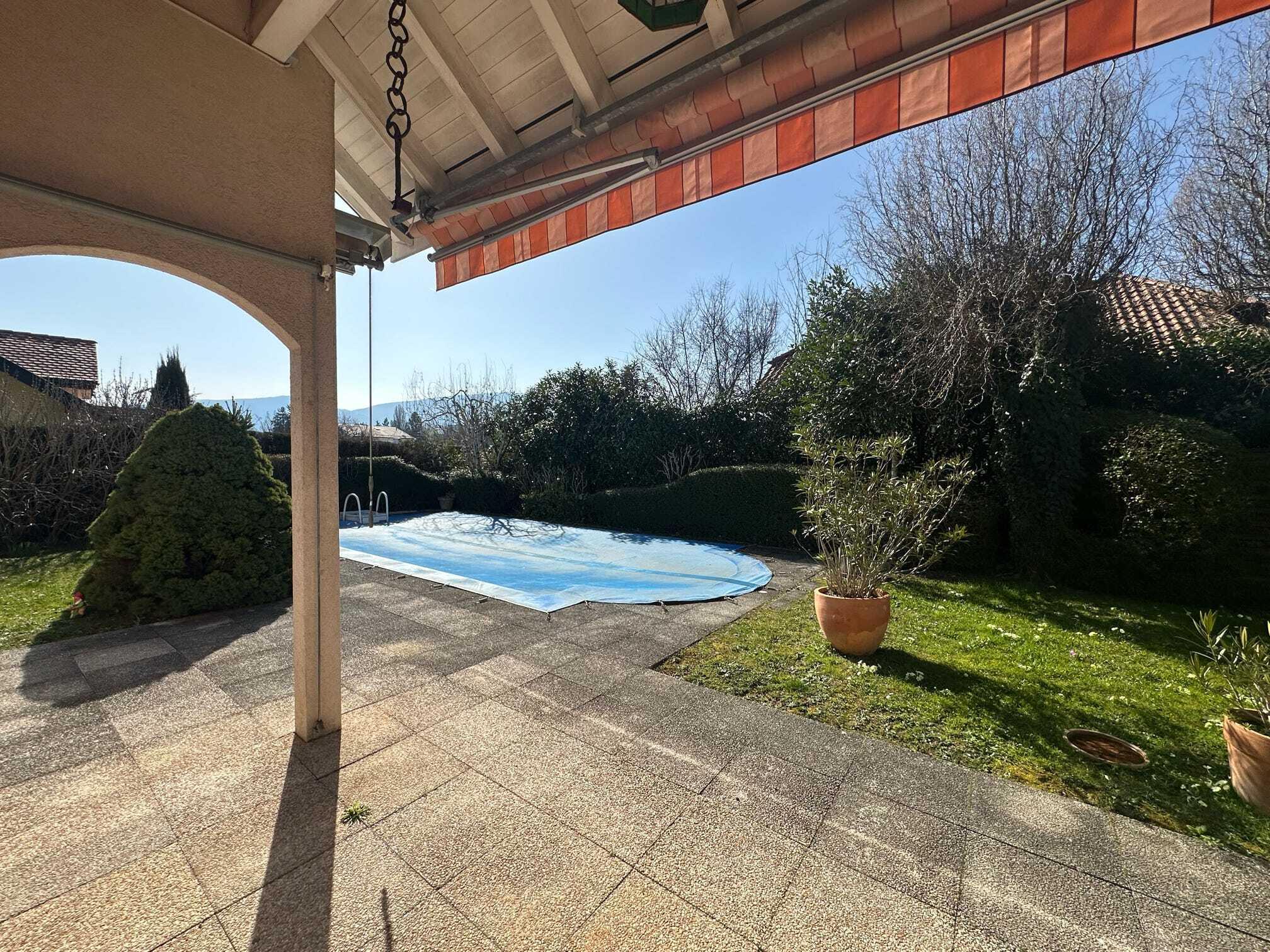 À l’extérieur, vous profiterez d’un jardin privatif soigneusement entretenu avec piscine, offrant un espace de détente privilégié en toute intimité.