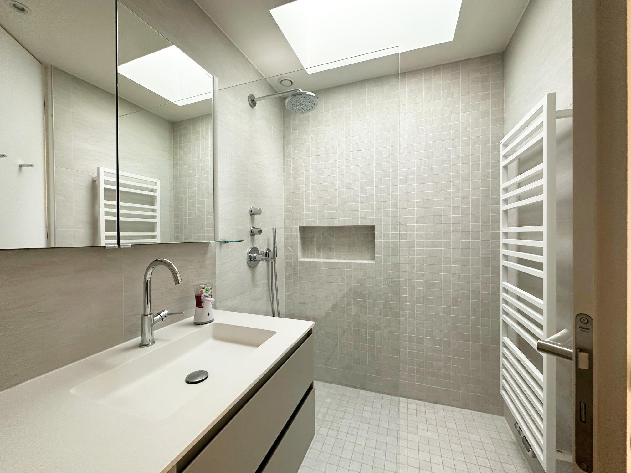 - Une troisième grande chambre avec armoires encastrées, salle de douche privative (douche, lavabo, WC) et accès à la terrasse.