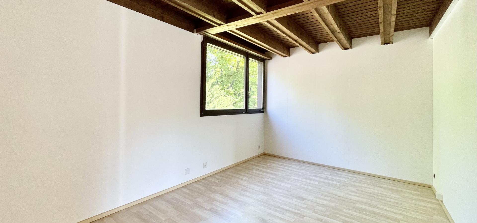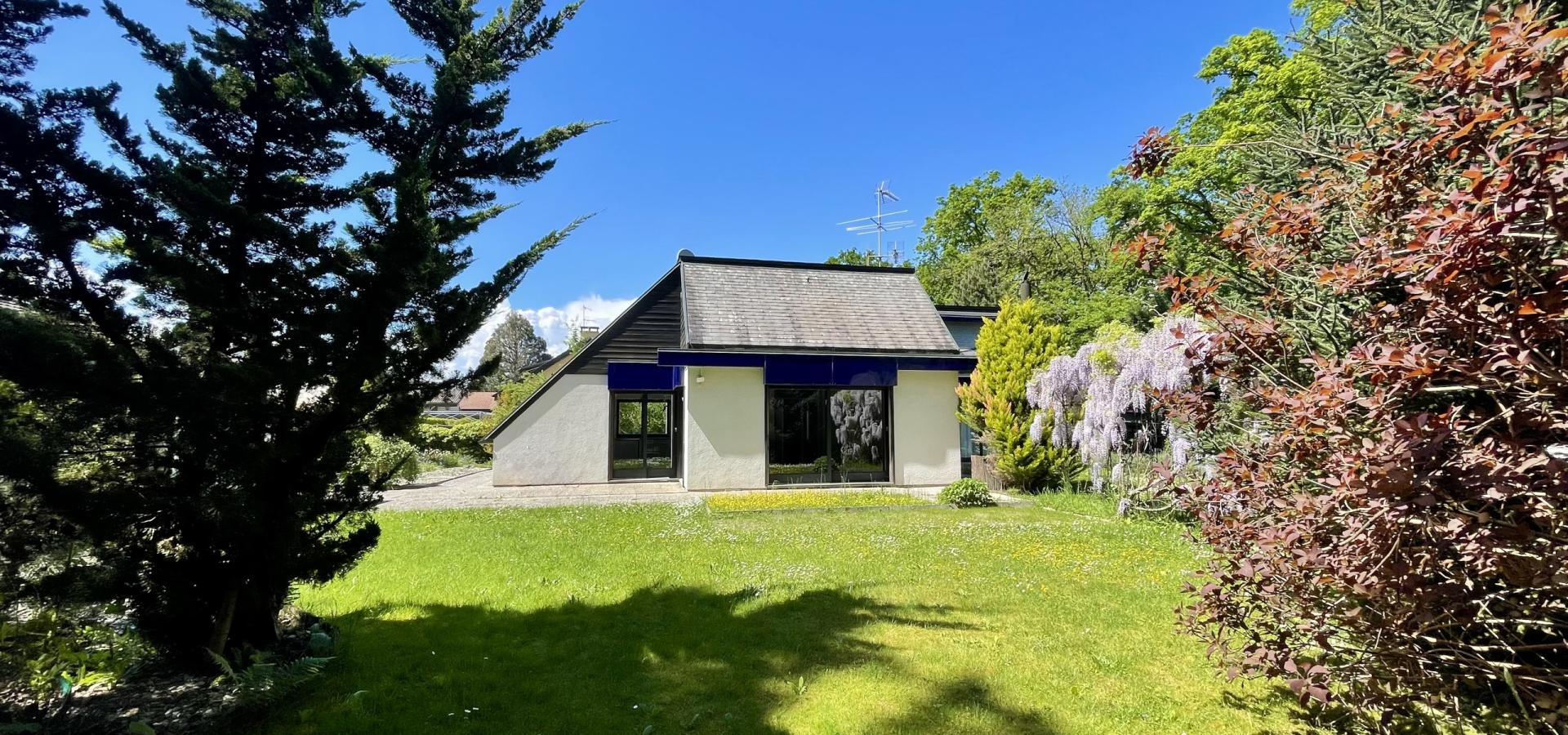 Régulièrement entretenue, cette maison d’architecte est bâtie sur une grande parcelle plate d’environ 1'350 m², bien orientée, en bordure de forêt et à l’abri de toutes nuisances.