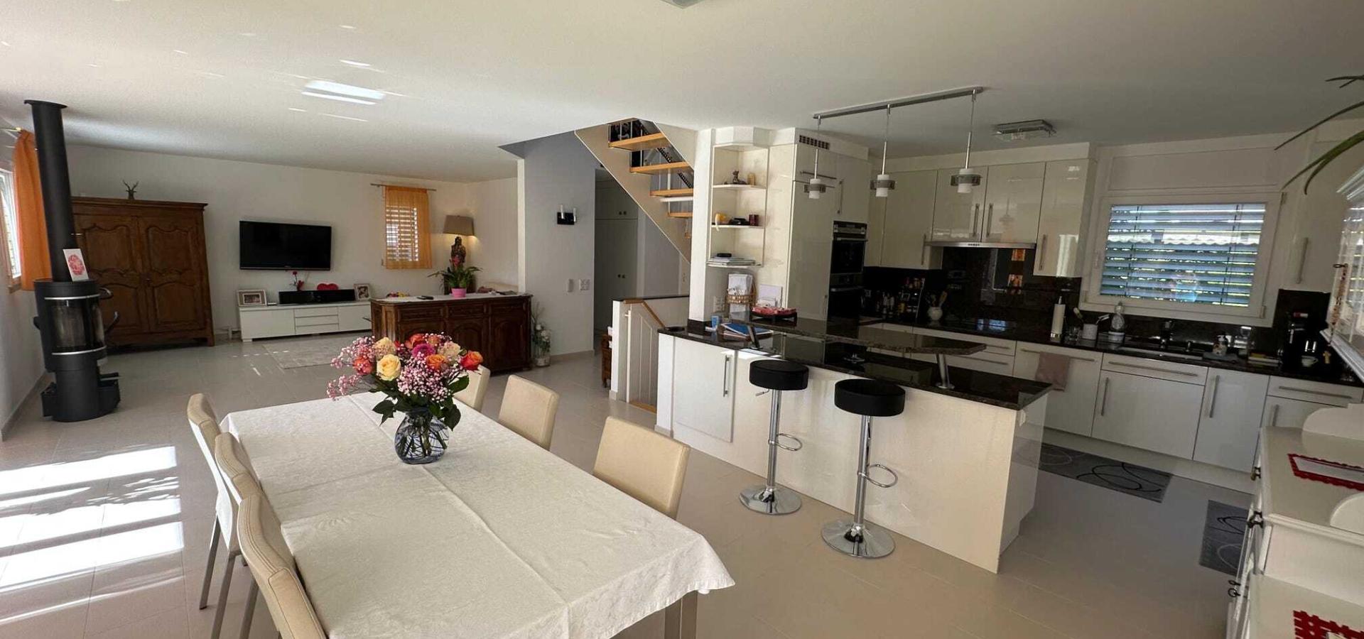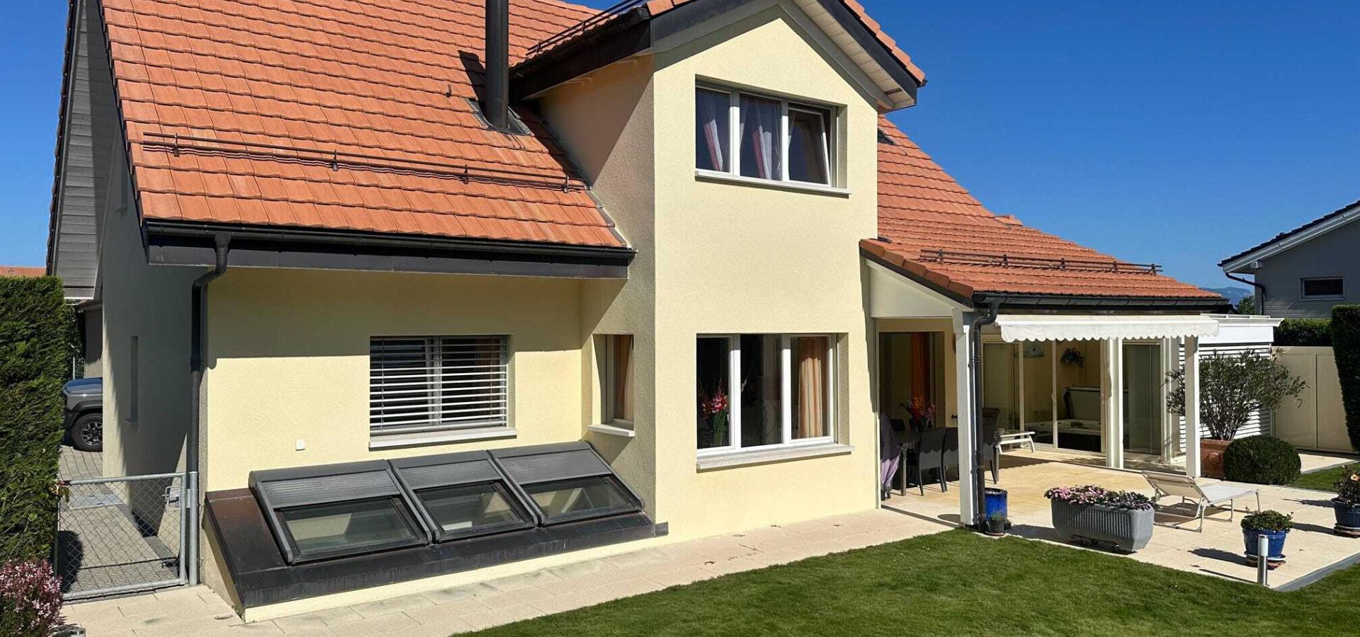 Située dans la charmante commune de Chavannes-des-Bois, cette belle maison individuelle offre un cadre de vie paisible à proximité immédiate de la nature, tout en bénéficiant de la proximité du centre Manor Chavannes et du centre de Nyon.