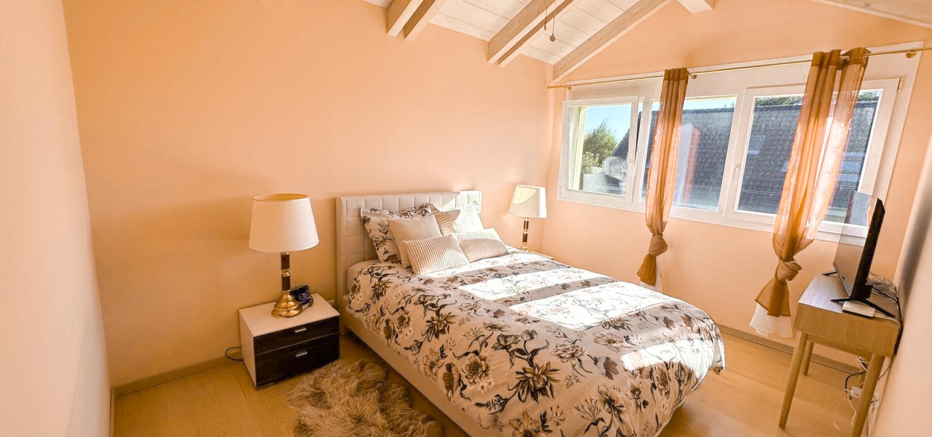 Le jardin, soigneusement entretenu, constitue un véritable prolongement de l’espace intérieur et invite à la détente dans un cadre verdoyant et sans vis-à-vis. La maison dispose également d’un garage.