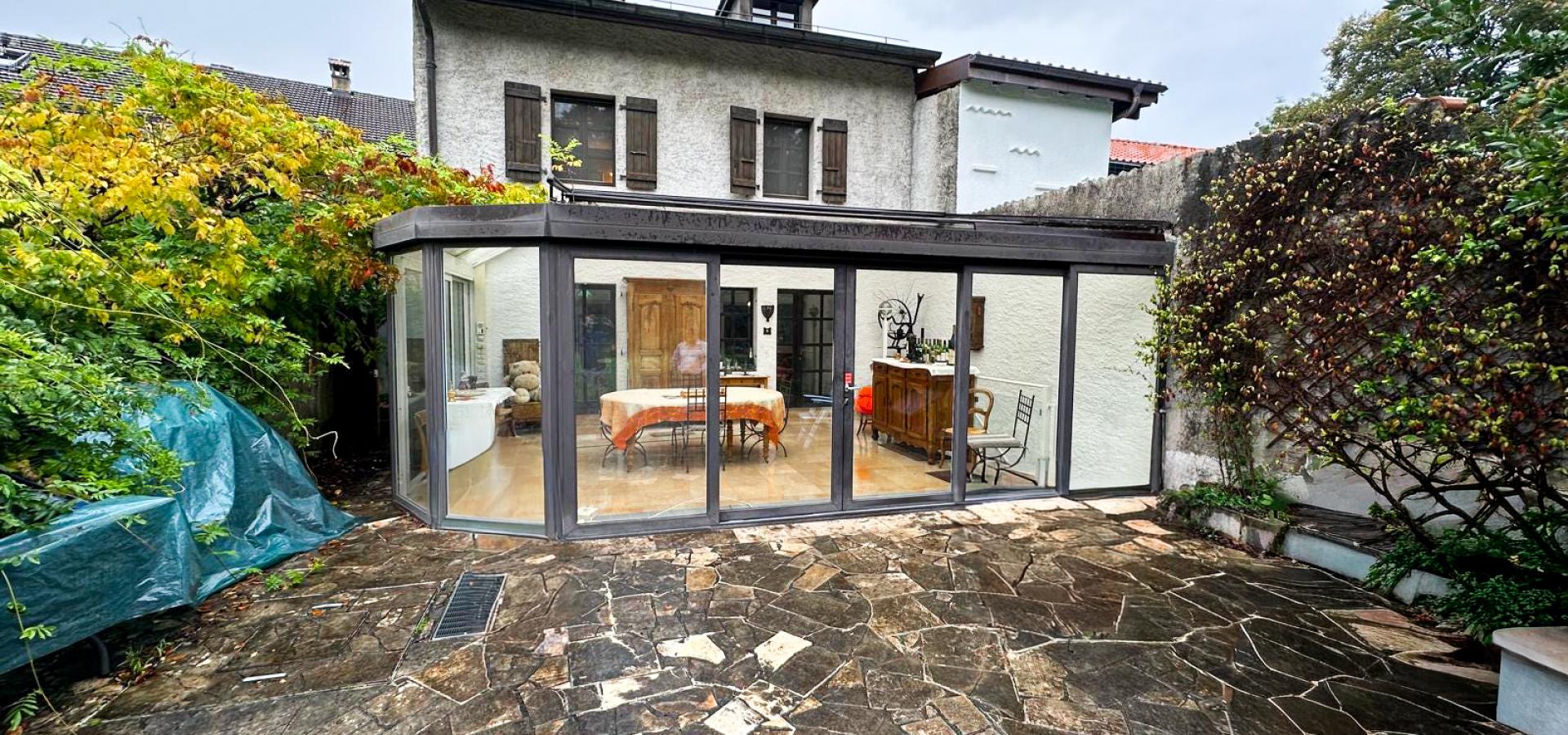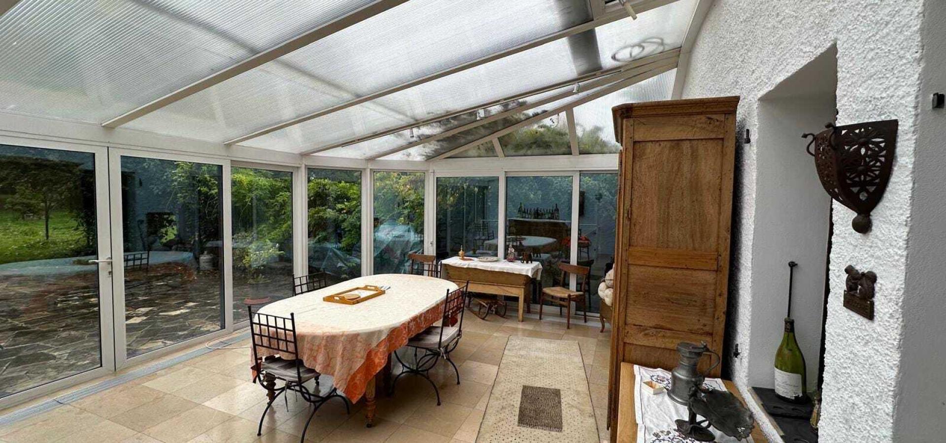 À l’avant de la maison, un agréable espace extérieur vient également compléter les lieux. À l’arrière de la maison, une vaste véranda fermée permet de profiter pleinement de l’extérieur même en hiver. Elle s’ouvre sur une grande terrasse donnant accès à un large jardin arboré. Depuis la véranda, un escalier conduit au sous-sol, où se trouvent plusieurs pièces pouvant être aménagées en buanderie ou en espace de rangement.