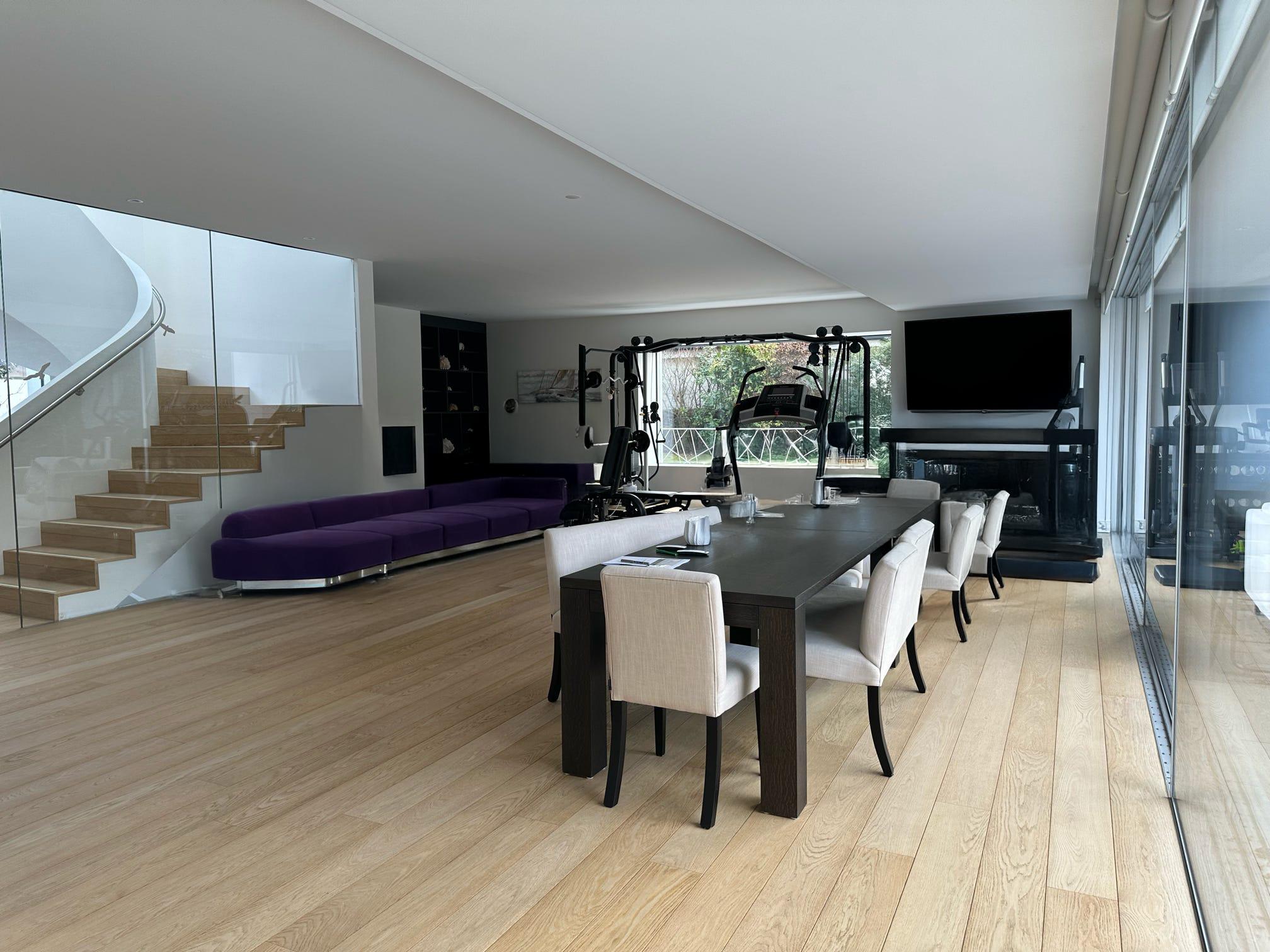 - Un vaste séjour et une salle à manger, avec cheminée et accès direct à l’extérieur ;
