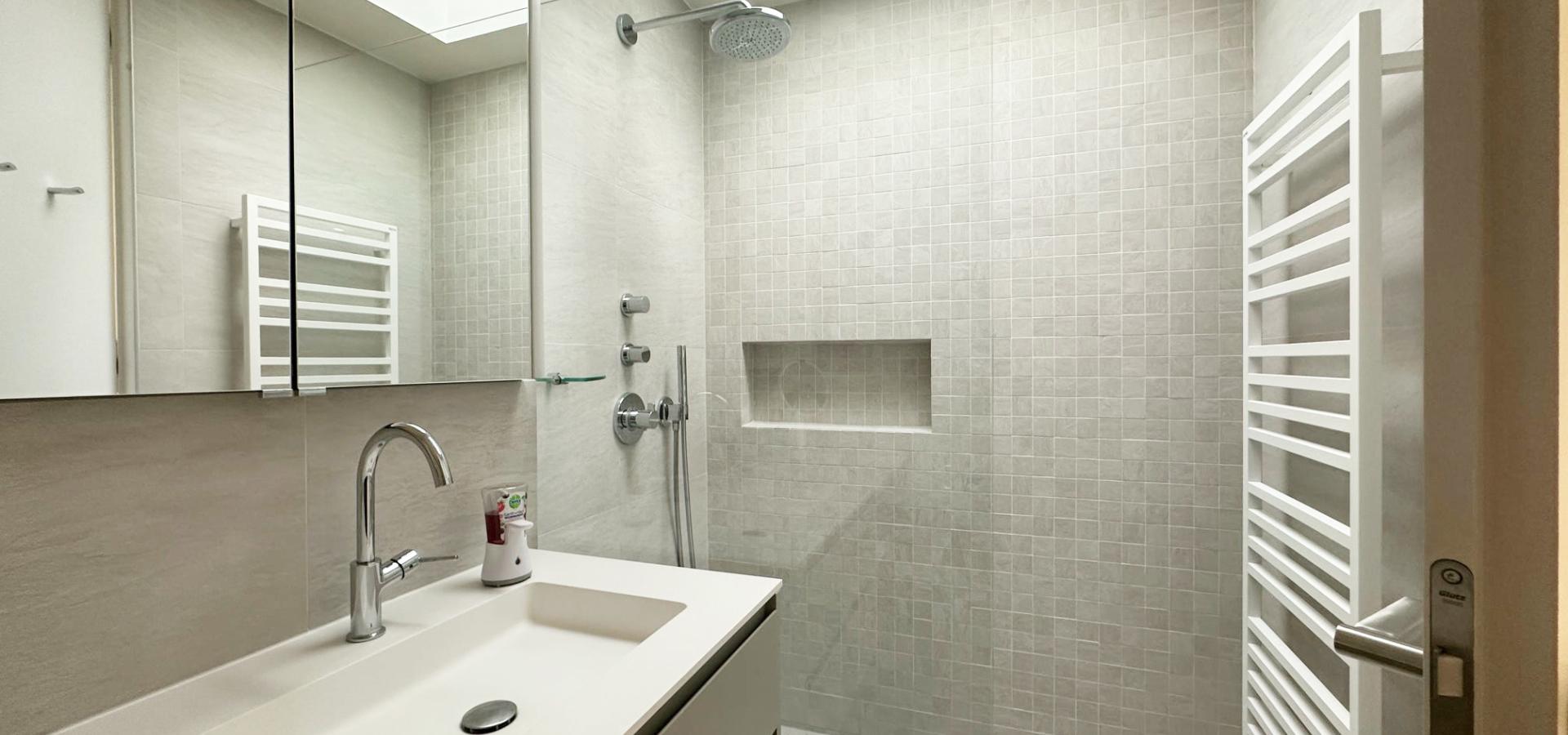 - Une troisième grande chambre avec armoires encastrées, salle de douche privative (douche, lavabo, WC) et accès à la terrasse.