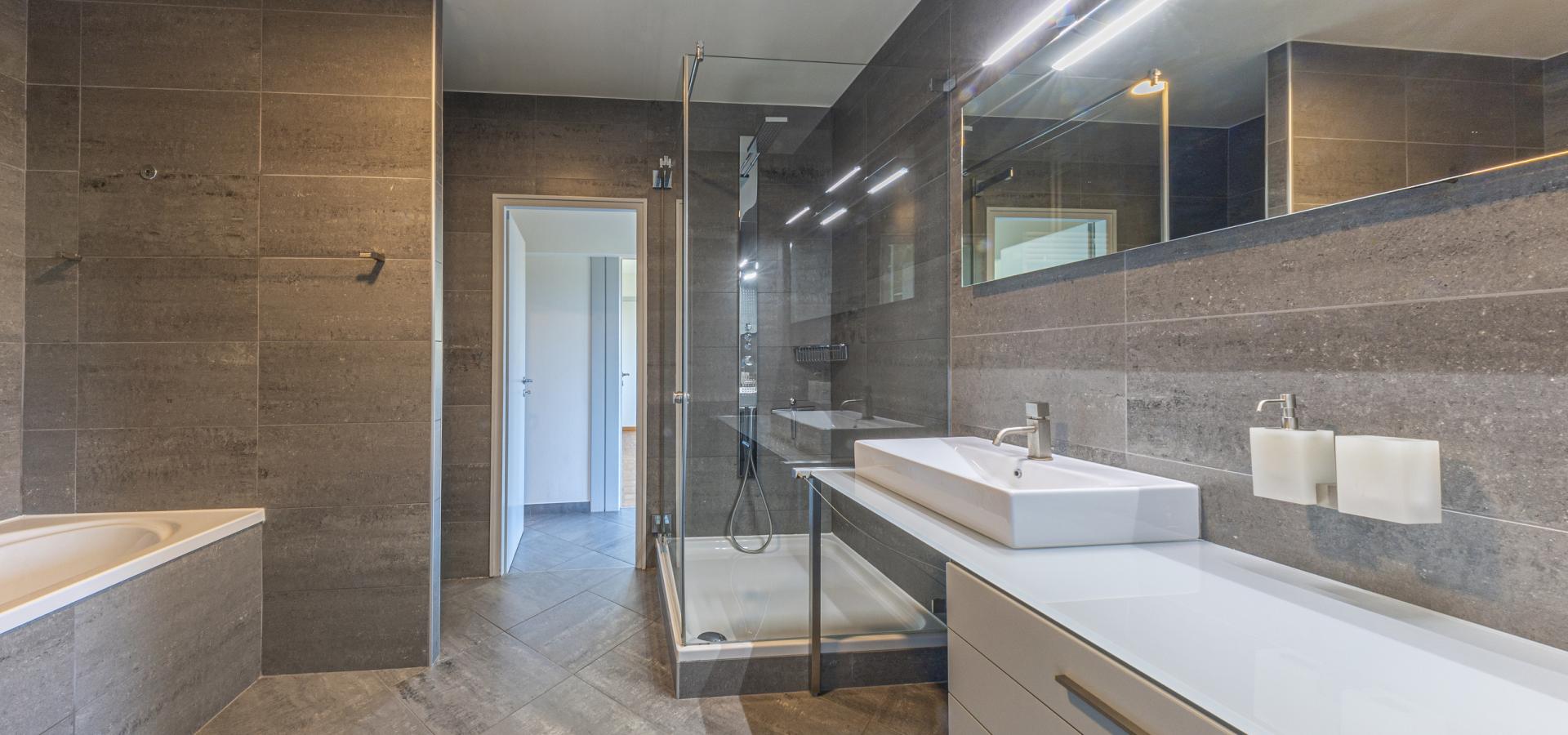 - Une grande salle de bains (douche, baignoire, lavabo, radiateur) ;
