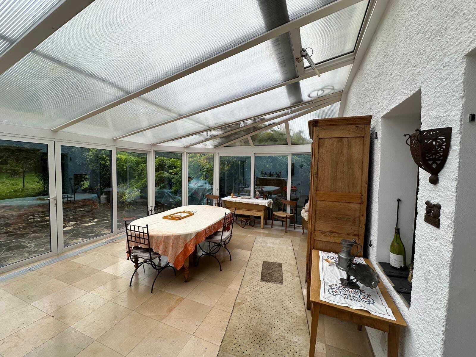 À l’avant de la maison, un agréable espace extérieur vient également compléter les lieux. À l’arrière de la maison, une vaste véranda fermée permet de profiter pleinement de l’extérieur même en hiver. Elle s’ouvre sur une grande terrasse donnant accès à un large jardin arboré. Depuis la véranda, un escalier conduit au sous-sol, où se trouvent plusieurs pièces pouvant être aménagées en buanderie ou en espace de rangement.