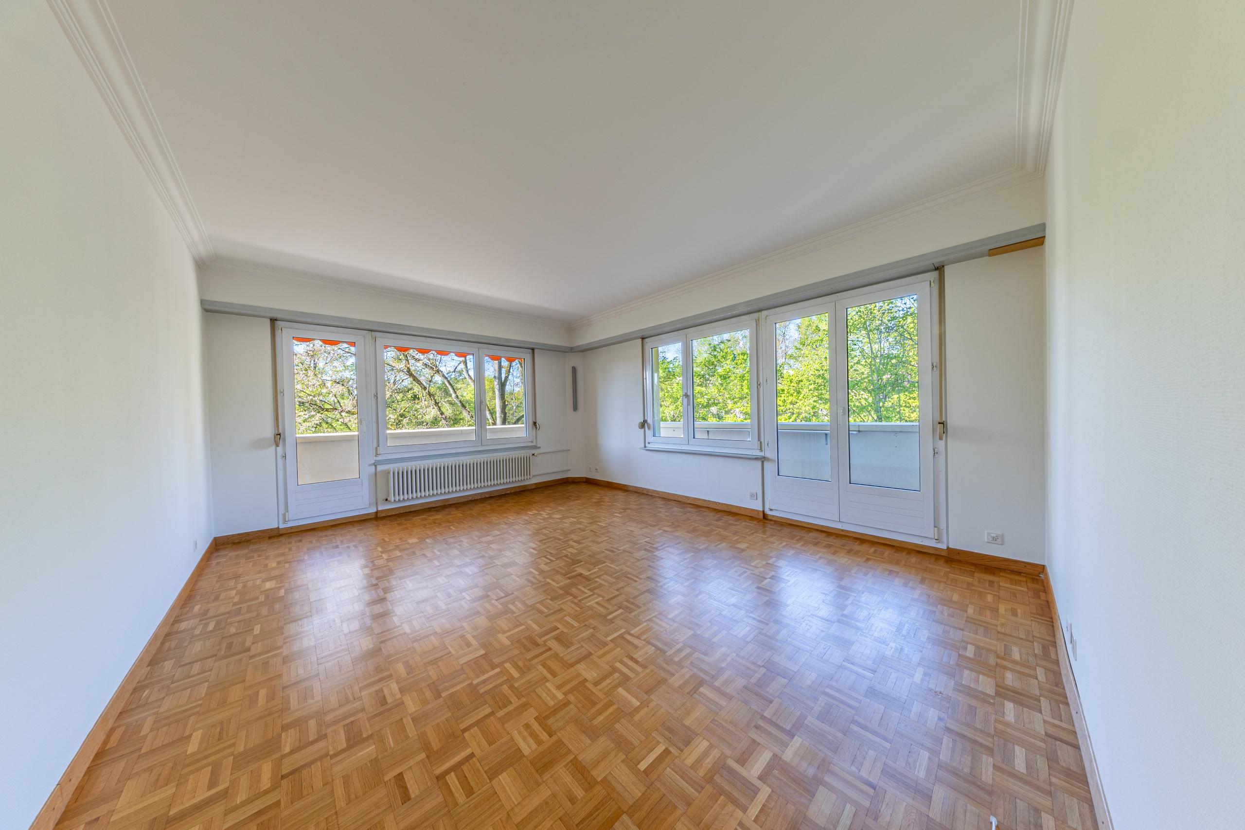 Ce bel appartement de 5 pièces, très bien entretenu, se trouve au 4ème étage d'un immeuble de 6 niveaux. En outre, il bénéficie d'une vue dégagée et d'un ensoleillement optimal.